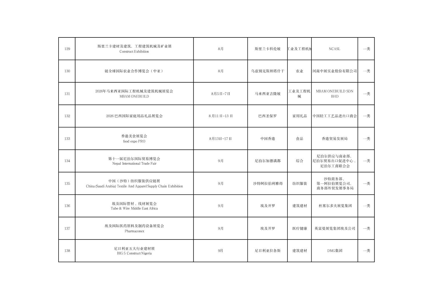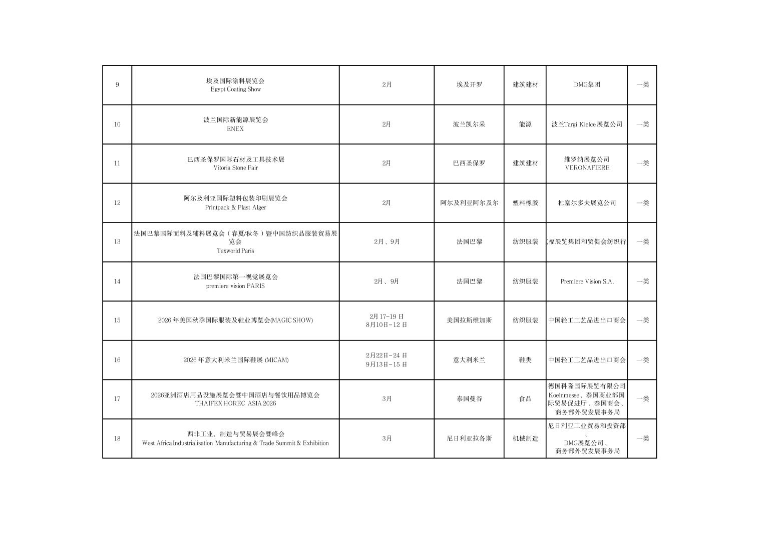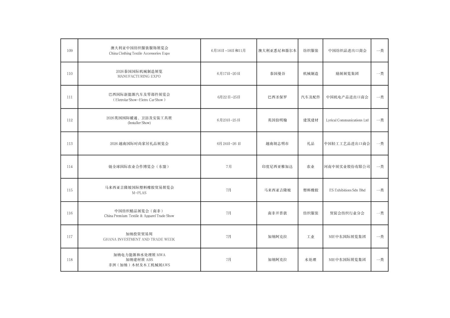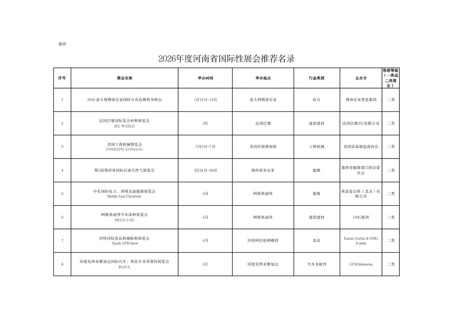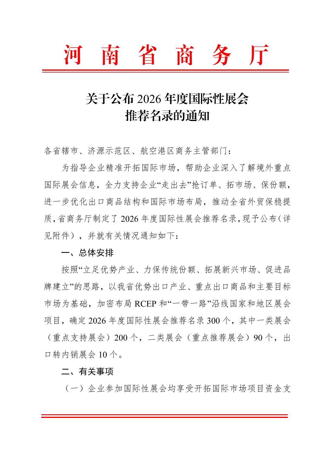 河南省商务厅关于公布2026年度国际性展会推荐名录的通知